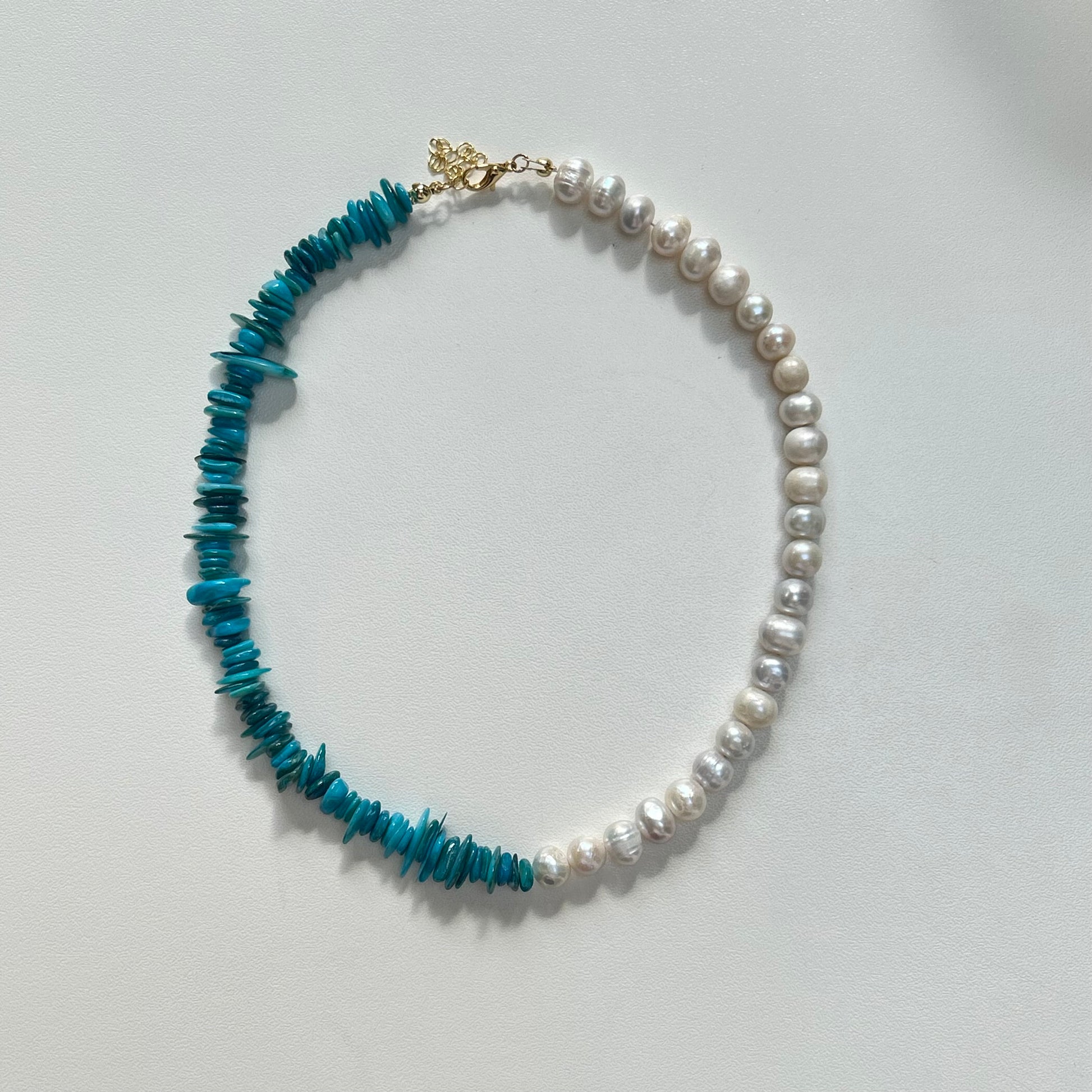 Half turquoise stones half fresh water pearls