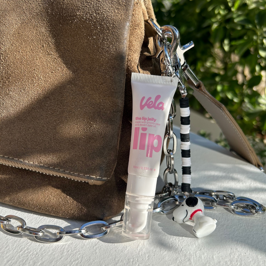 Vela lip jelly with a Snoopy charm